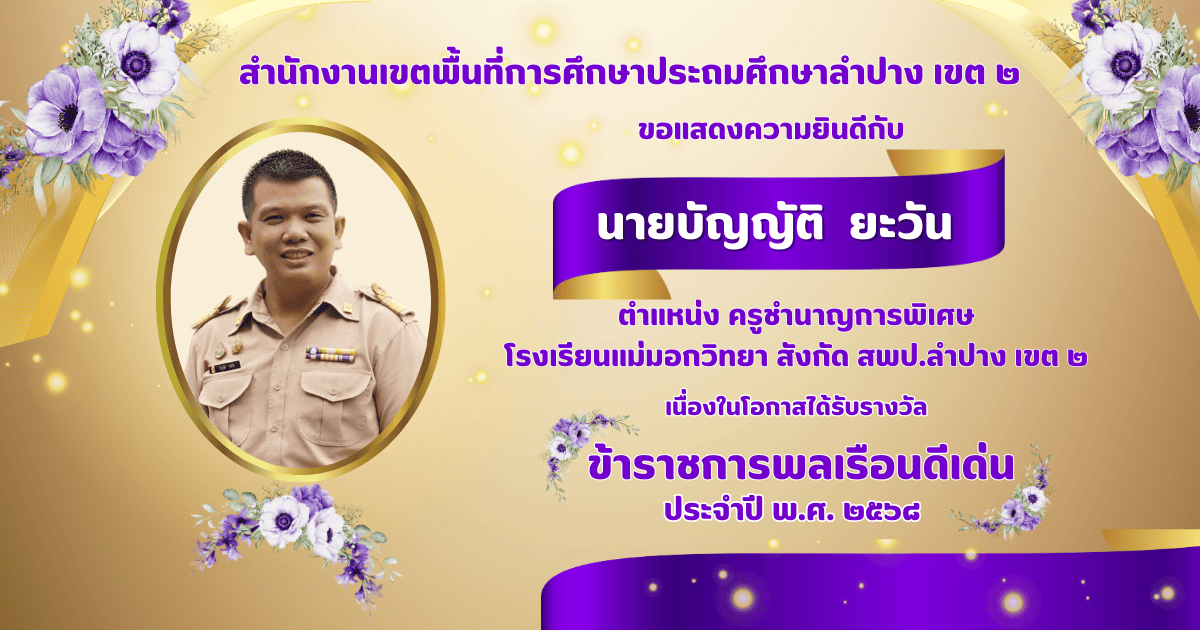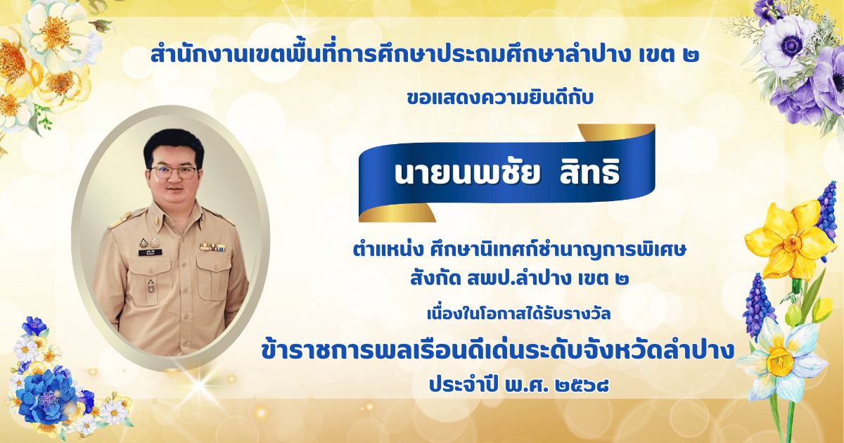 รองผู้อำนวยการสำนักงานเขตพื้นที่การศึกษาประถมศึกษาลำปาง เขต 2 ติดต่อ 080-1301215