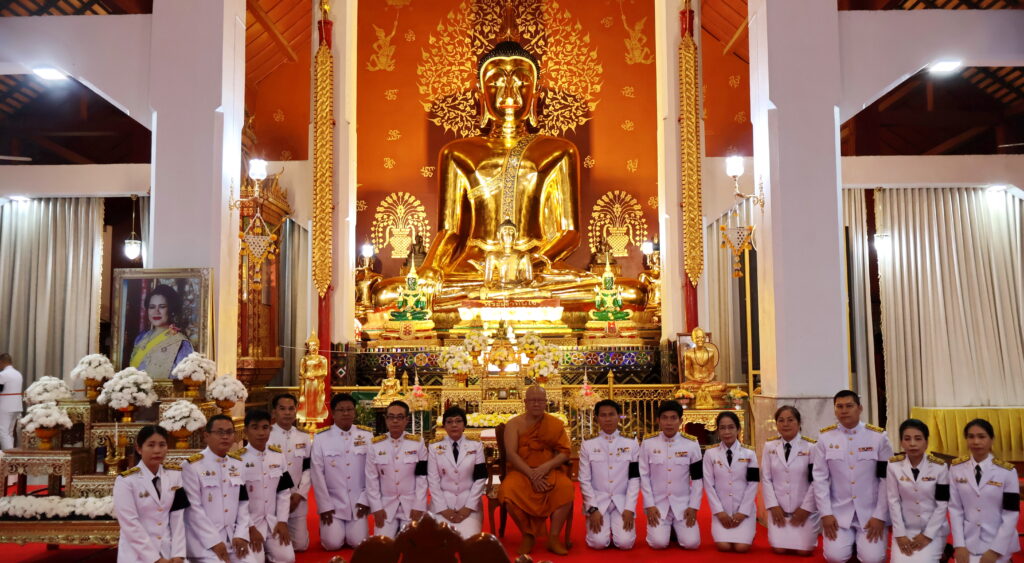วันที่ 10 พฤศจิกายน 2568 เวลา 17.00 น. สพป.ลำปาง เขต 2 นำโดย นายสมบัติ สิริวงศ์เครือ ผู้อำนวยการสำนักงานเขตพื้นที่การศึกษาประถมศึกษาลำปางเขต 2 พร้อมด้วยคณะบุคลากรในสังกัดเข้าร่วมพระพิธีบำเพ็ญกุศล เพื่ออุทิศถวายพระราชกุศลแด่สมเด็จพระนางเจ้าสิริกิติ์ พระบรมราชินีนาถ พระบรมราชชนนีพันปีหลวง ตามที่สำนักงานศึกษาศึกษาธิการจังหวัดได้รับมอบหมายจากจังหวัดลำปางให้หน่วยงานในสังกัดกระทรวงศึกษาธิการเข้าร่วมพิธี โดยมี ดร.หัทกาญจน์ อดุลถิรเขตต์ ศึกษาธิการจังหวัดลำปาง เป็นประธานในพิธี ณ วัดพระแก้วดอนเต้าสุชาดาราม อ.เมือง จ.ลำปาง