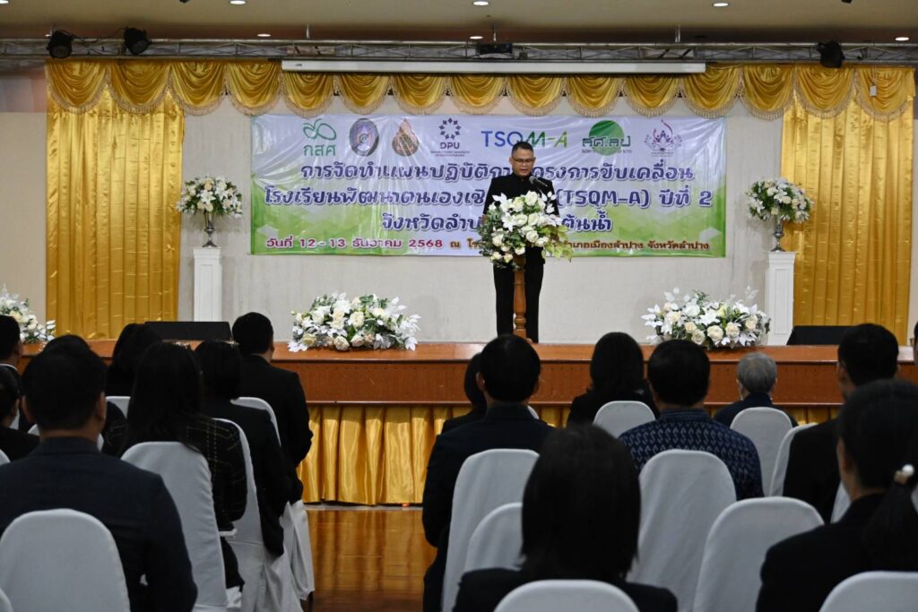 วันที่ 12-13 ธันวาคม 2568 นายสมบัติ ศิริวงศ์เครือ ผอ.สพป.ลำปาง เขต 2 ได้มอบหมายให้นายชยพล ศรีประดิษฐ์ รอง ผอ.สพป.ลำปาง เขต 2 พร้อมด้วย นายพีระพัชร์ มหาวรรณ์ และนายนพชัย สิทธิ ศึกษานิเทศก์ เข้าร่วมกิจกรรมโครงการขับเคลื่อนโรงเรียนพัฒนาตนเองเชิงพื้นที่ (TSQM-A) ปีที่ 2 จังหวัดลำปาง เพื่อส่งเสริมการบูรณาการความร่วมมือระหว่างหน่วยงานด้านการศึกษา การพัฒนาคุณภาพสถานศึกษา ระบบนิเวศทางการศึกษา และติดตามผลการพัฒนาผู้เรียนในพื้นที่เป้าหมาย โดยมี นายรณรงค์ เทพรักษ์ รองผู้ว่าราชการจังหวัดลำปาง เป็นประธานในพิธีเปิดฯ ณ ห้องประชุมจิตต์บัวคำ โรงแรมบุษย์น้ำทอง อำเภอเมือง จังหวัดลำปาง