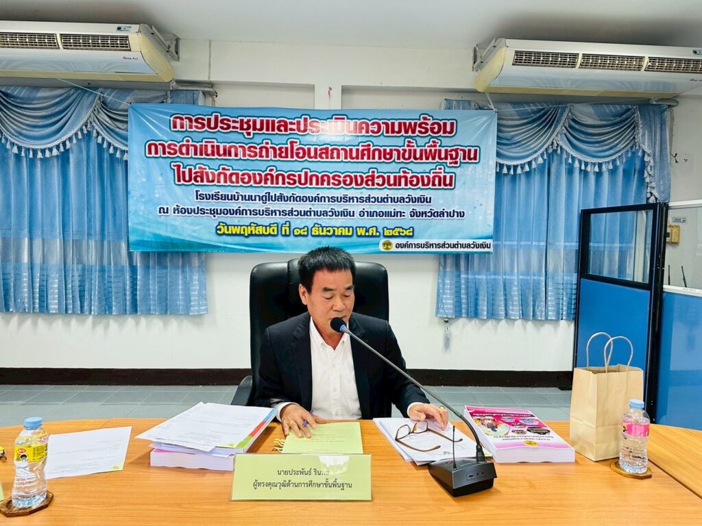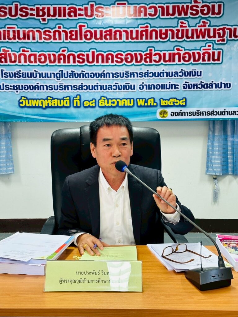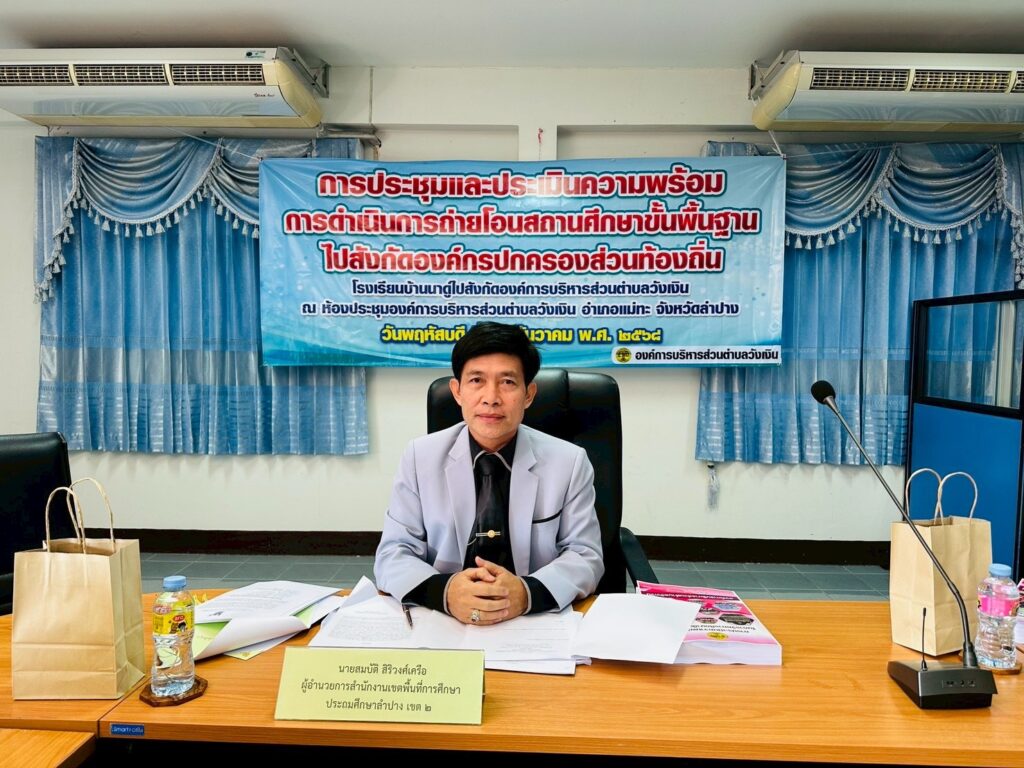 วันที่ 18 ธันวาคม 2568 เวลา 09.00 น. เป็นต้นไป สำนักงานเขตพื้นที่การศึกษาประถมศึกษาลำปาง เขต 2ได้จัดประชุมคณะกรรมการประเมินความพร้อมในการจัดการศึกษาขั้นพื้นฐานขององค์การบริหารส่วนตำบลวังเงิน ครั้งที่ 1/2568 ณ ห้องประชุมองค์การบริหารส่วนตำบลวังเงิน อ.แม่ทะ จ.ลำปาง นำโดย นายสมบัติ สิริวงศ์เครือ ผอ.สพป.ลำปาง เขต 2 พร้อมด้วยคณะกรรมการ ประกอบด้วย กรรมการผู้แทนของสำนักงานเขตพื้นที่การศึกษาประถมศึกษาลำปาง เขต 2 จำนวน 3 คน ได้แก่