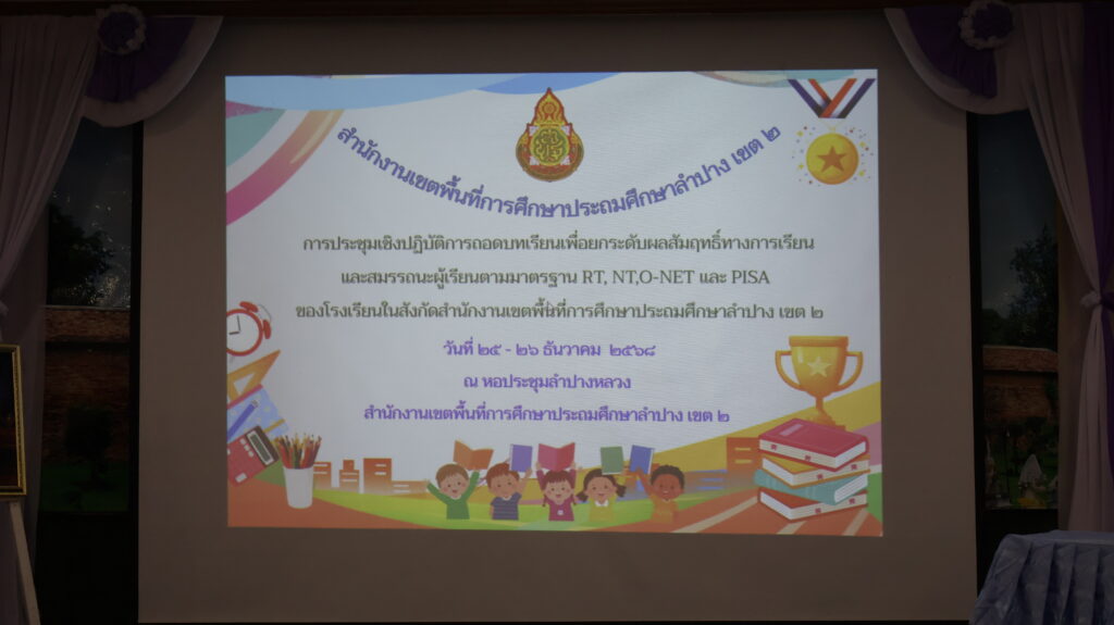 วันที่ 25 ธันวาคม 2568 เวลา 09.00 น. นายประชา ไชยศรี รองผู้อำนวยการสำนักงานเขตพื้นที่การศึกษาประถมศึกษาลำปาง เขต 2 เป็นประธานในพิธีเปิดการประชุมเชิงปฏิบัติการถอดบทเรียนเพื่อยกระดับผลสัมฤทธิ์ทางการเรียนและสมรรถนะผู้เรียนตามมาตรฐาน RT, NT,O-NET และ PISA ของโรงเรียนในสังกัด จัดโดยกลุ่มนิเทศ ติดตาม และประเมินผลการจัดการศึกษา ตามโครงการฯประจำปีงบประมาณ พ.ศ. 2568 ซึ่งได้ตระหนักถึงความสำคัญของการพัฒนาคุณภาพผู้เรียนในทุกระดับชั้นโดยเฉพาะการยกระดับผลสัมฤทธิ์ทางการเรียน O-NET และ สมรรถนะผู้เรียนตามมาตรฐาน PISA ตามวัตถุประสงค์เพื่อกำกับ ติดตาม ตรวจสอบ และประเมินผลการดำเนินงานของสถานศึกษาในสังกัดในการพัฒนาคุณภาพการจัดการศึกษาได้อย่างมีประสิทธิภาพและเป็นระบบโดยเน้นผลลัพธ์การเรียนตามมาตรฐาน RT, NT, O-NET และ PISA เพื่อส่งเสริมและสนับสนุนให้สถานศึกษาพัฒนากระบวนการจัดการเรียนรู้ที่เน้นผู้เรียนเป็นสำคัญ มุ่งสร้างสมรรถนะหลักของผู้เรียนในด้านการอ่านการคิดวิเคราะห์การใช้เหตุผลเชิงคณิตศาสตร์และการประยุกต์ใช้ความรู้ทางวิทยาศาสตร์ในชีวิตจริง และเพื่อยกระดับผลสัมฤทธิ์ทางการเรียนของผู้เรียนในทุกระดับชั้นให้สูงขึ้นอย่างต่อเนื่อง ให้สถานศึกษามีการบริหารจัดการที่มุ่งผลสัมฤทธิ์ทางการศึกษาอย่างมีคุณภาพตามมาตรสากล ในการจัดอบรมครั้งนี้ได้มีวิทยากรเป็นผู้บริหารโรงเรียน คณะครูและทีมวิทยากรจากโรงเรียนในสังกัด ผู้เข้าร่วมการประชุมเป็นผู้บริหารสถานศึกษา และครูผู้รับผิดชอบงานยกระดับผลสัมฤทธิ์ทางการเรียนและสมรรถนะผู้เรียนตามมาตรฐาน O-NET และ PISA ของโรงเรียนในสังกัด รวมทั้งสิ้น 282 คน และนายสมบัติ สิริวงศ์เครือ ผู้อำนวยการสำนักงานเขตพื้นที่การศึกษาประถมศึกษาลำปาง เขต 2 เป็นประธานในพิธีปิดการประชุมฯ ณ หอประชุมลำปางหลวง สำนักงานเขตพื้นที่การศึกษาประถมศึกษาลำปาง เขต 2