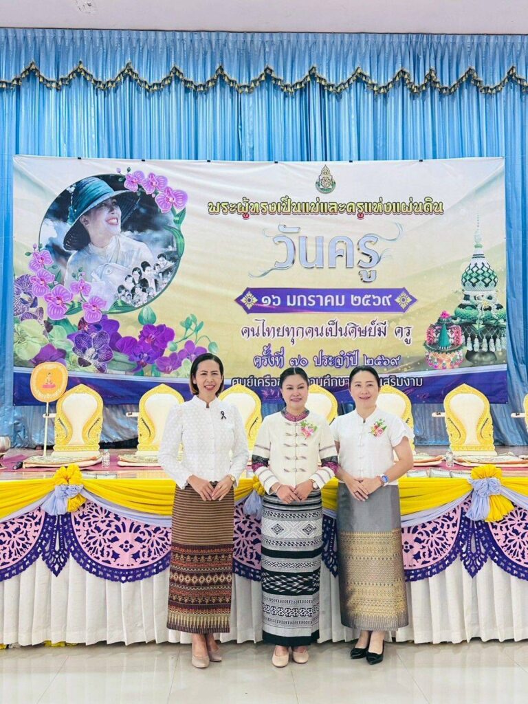 วันที่ 16 มกราคม 2569 นายสมบัติ สิริวงศ์เครือ ผู้อำนวยการสำนักงานเขตพื้นที่การศึกษาประถมศึกษาลำปาง เขต 2 มอบหมายให้ นางนัยนา ยะตา รองผู้อำนวยการสำนักงานเขตพื้นที่การศึกษาประถมศึกษาลำปาง เขต 2 พร้อมด้วยนางเพลินพิศ อิทธิผล ศึกษานิเทศก์ เข้าร่วมพิธีงานวันครูแห่งชาติ ครั้งที่ 70 ประจำปี 2569 “พระผู้ทรงเป็นแม่และครูแห่งแผ่นดิน“ คนไทยทุกคนเป็นศิษย์มี ครู ศูนย์เครือข่ายสถานศึกษาอำเภอเสริมงาม
