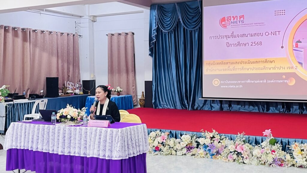 วันที่ 21 มกราคม 2569 นายสมบัติ สิริวงศ์เครือ ผู้อำนวยการสำนักงานเขตพื้นที่การศึกษาประถมศึกษา ลำปาง เขต 2 มอบหมายให้ นางนัยนา ยะตา รองผู้อำนวยการสำนักงานเขตพื้นที่การศึกษาประถมศึกษา ลำปาง เขต 2 เป็นประธานเปิดการประชุมชี้แจงการทดสอบทางการศึกษาระดับชาติ ขั้นพื้นฐาน O-NET , NT และ RT ปีการศึกษา 2568 โดยมี คณะศึกษานิเทศก์ เข้าร่วมประชุมชี้แจง ฯ ในครั้งนี้ ซึ่งมีผู้เข้าร่วมรับฟังการประชุมชี้แจงฯ ประกอบด้วย ผู้บริหาร คณะกรรมการดำเนินการสอบ ประจำสนามสอบอำเภอเสริมงาม ณ โรงเรียนอนุบาลเสริมงาม