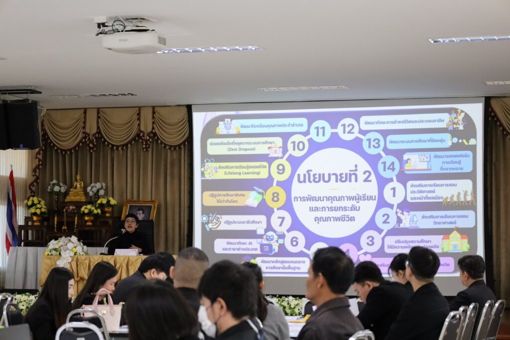 วันที่ 20 – 21 มกราคม 2569 นายสมบัติ สิริวงศ์เครือ ผู้อำนวยการสำนักงานเขตพื้นที่การศึกษาประถมศึกษาลำปาง เขต 2 มอบหมายให้ นายพิจารณา จันทะสาร นักวิเคราะห์นโยบายและแผนปฏิบัติการ เข้าร่วมประชุมเชิงปฏิบัติการวิเคราะห์สภาพแวดล้อมสถานการณ์การกำหนดภาพแห่งอนาคตและสร้างกลยุทธ์การเปลี่ยนผ่านไปสู่อนาคตที่ยั่งยืนและประชุมเชิงปฏิบัติการจัดทำทิศทางการพัฒนาการศึกษา ตามแผนพัฒนาการศึกษาจังหวัดลำปาง ประจำปีงบประมาณ พ.ศ. 2571 – 2575 เพื่อรองรับการเปลี่ยนแปลงของเทรนด์โลกและยกระดับคุณภาพการศึกษาในพื้นที่อย่างเป็นรูปธรรม ณ ห้องประชุมพระบาท 1 สำนักงานศึกษาธิการจังหวัดลำปาง