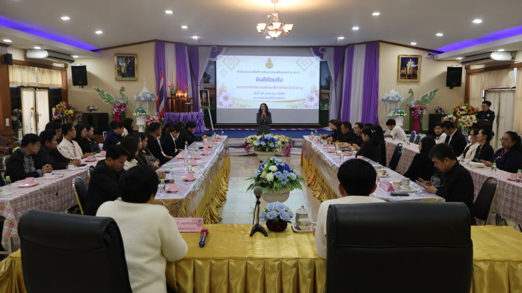 วันที่ 30 มกราคม 2569 สพป.ลำปาง เขต 2 นำโดย นายสมบัติ สิริวงศ์เครือ ผอ.สพป.ลำปาง เขต 2 พร้อมด้วย นายชยพล ศรีประดิษฐ์ นางนัยนา ยะตา รอง ผอ. สพป.ลำปาง เขต 2 และคณะบุคลากรของ สพป.ลำปาง เขต 2 ให้การต้อนรับคณะศึกษาดูงานจากสำนักงานศึกษาธิการจังหวัดลำปาง นำโดย ดร.หัทกาญจน์ อดุลถิรเขตต์ ศึกษาธิการจังหวัดลำปาง เพื่อร่วมแสดงความยินดีกับ นางสาวณัชชา ถาวร ในโอกาสย้ายมาดำรงตำแหน่ง ศึกษานิเทศก์ชำนาญการพิเศษ สังกัด สพป.ลำปาง เขต 2 ณ หอประชุมลำปางหลวง สพป.ลำปาง เขต 2
