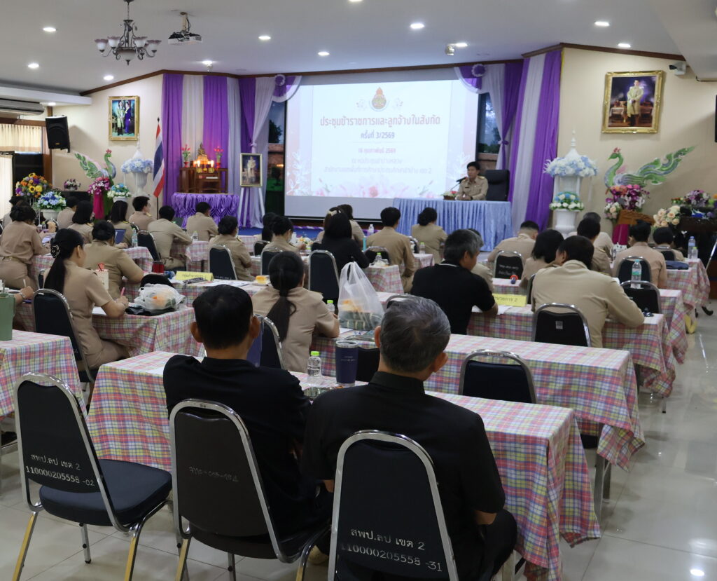 วันที่ 16 กุมภาพันธ์ 2569 เวลา 09.00 น. นายสมบัติ สิริวงศ์เครือ ผู้อำนวยการสำนักงานเขตพื้นที่การศึกษาประถมศึกษาลำปาง เขต 2 เป็นประธานการประชุมข้าราชการและลูกจ้างในสังกัดสำนักงานเขตพื้นที่การศึกษาประถมศึกษาลำปาง เขต 2 ครั้งที่ 3 / 2569 โดยมี นางนัยนา ยะตา รองผู้อำนวยการสำนักงานเขตพื้นที่การศึกษาประถมศึกษาลำปาง เขต 2 เข้าร่วมประชุม ณ หอประชุม ลำปางหลวง สำนักงานเขตพื้นที่การศึกษาประถมศึกษาลำปาง เขต 2