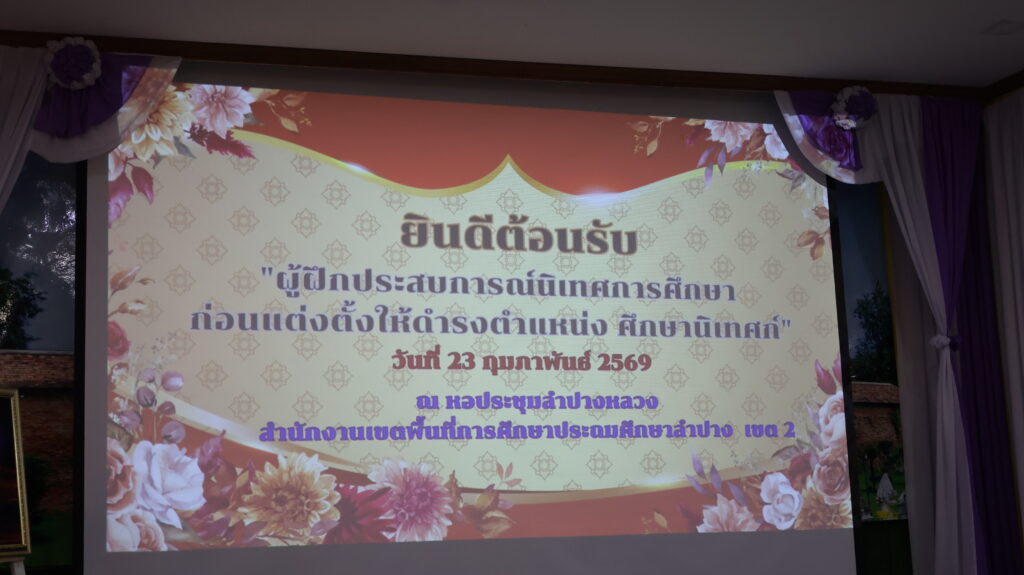 วันที่ 23 กุมภาพันธ์ 2569 เวลา 09.00 น. สพป.ลำปาง เขต 2 นำโดย นายสมบัติ สิริวงศ์เครือ ผอ.สพป.ลำปาง เขต 2 พร้อมด้วย นายชยพล ศรีประดิษฐ์ และนางนัยนา ยะตา รอง ผอ.สพป.ลำปาง เขต 2 คณะบุคลากรกลุ่มนิเทศ ติดตามและประเมินผลการจัดการศึกษา และกลุ่มพัฒนาครูและบุคลากรทางการศึกษา สพป.ลำปาง เขต 2 ให้การต้อนรับ ผู้ฝึกประสบการณ์นิเทศการศึกษาก่อนแต่งตั้งให้ดำรงตำแหน่ง ศึกษาเทศก์ ได้แก่
